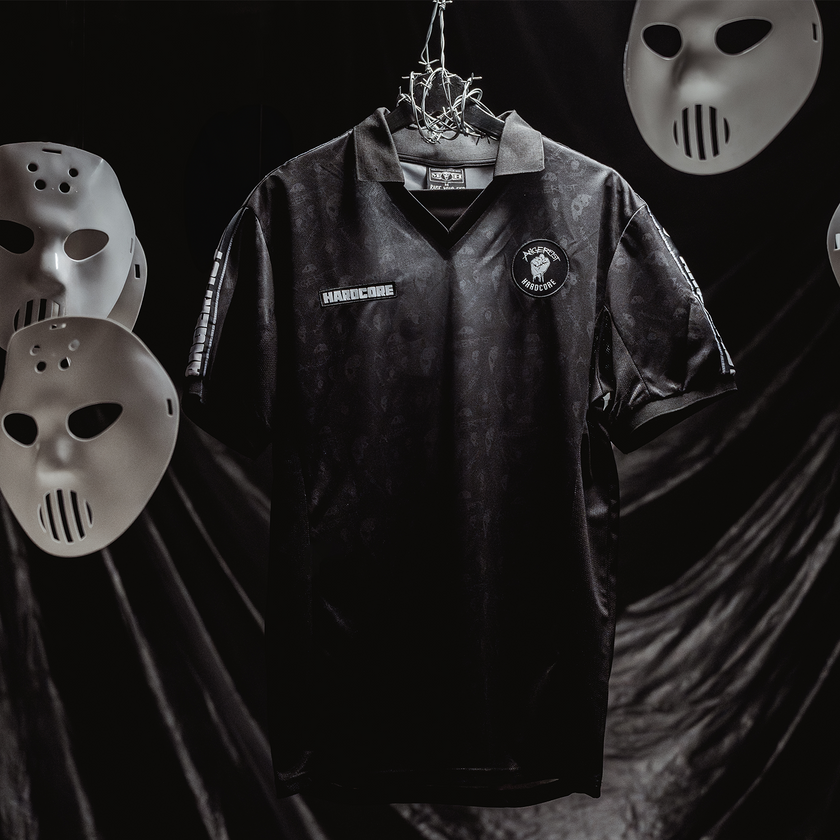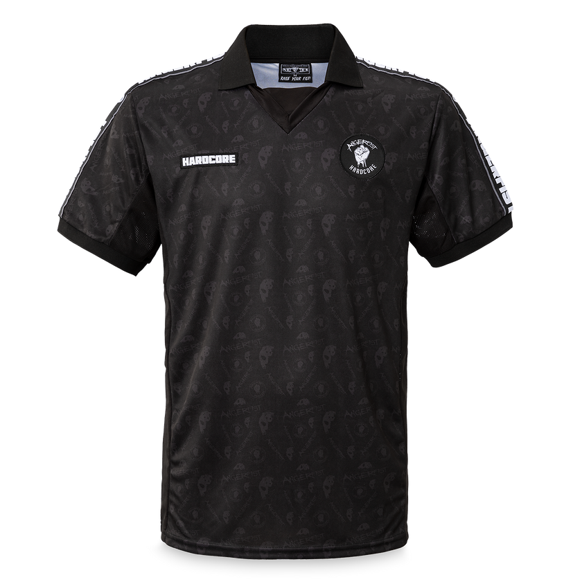 This is where hardcore meets the pitch. The black Angerfist Football T-Shirt brings a clean athletic silhouette, laced with raw energy. The Angerfist badge hits the left chest, while a Hardcore embroidery marks the right—built for the underground. Angerfist-branded tape runs down the sleeves, and the back carries the printed logo loud and proud.